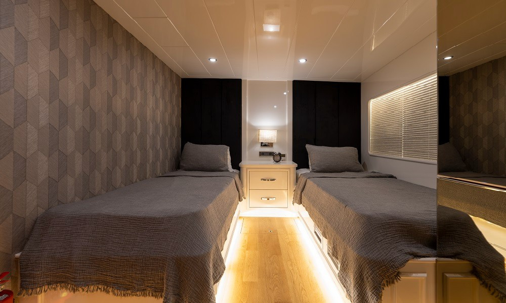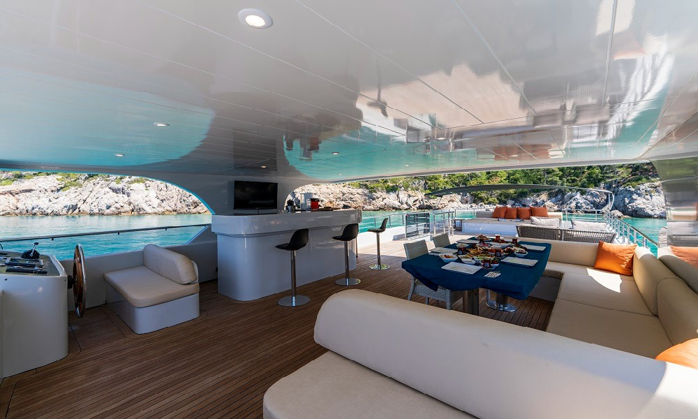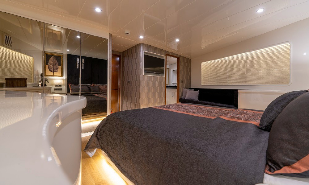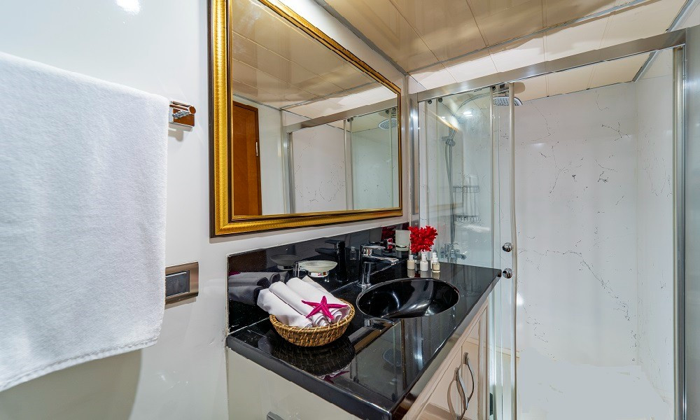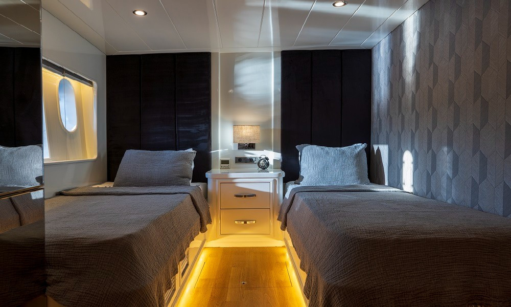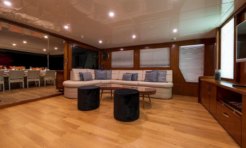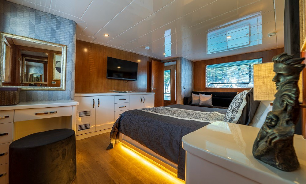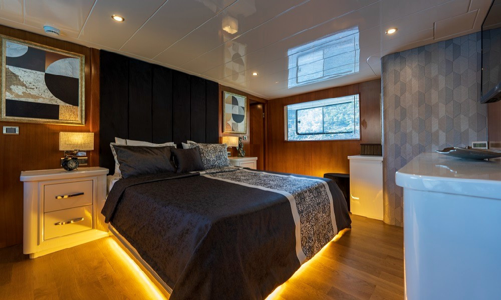 2015 yapımı olan yat, düşünebileceğiniz tüm olanaklarla donatılmıştır. Mavi yolculuklarda aranan konfor tam da burdadır. 3 Master, 2 Twin kabini bulunan teknemizin tüm kabinleri şık ve rahattır. Bir otel konforu yaşayacağınız bu tatilde hiçbir eksiğiniz olmayacak.